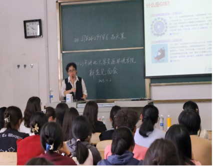 11月2日上午,资源环境学院2023级本科生新生见面会在阳逻校区B409教室举行,学院党委副书记李岚、副院长梅新、地理科学师范和地理信息科学老师、全体辅导员、通识教育学院辅导员王诗月出席本次会议,本次见面会由韩鹏振老师主持。