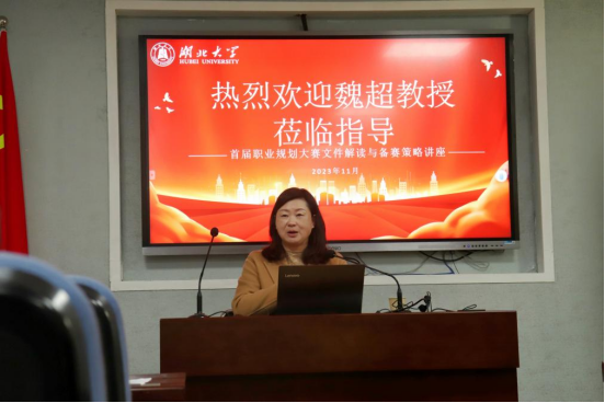 为更好实现以赛促学,引导大学生树立正确的成才观、就业观和择业观,科学合理规划学业与职业发展,提升就业竞争力。11月29日,我院在B6016会议室,开展了主题为“首届职业规划大赛文件解读与备赛策略”讲座。本次讲座特邀请武汉理工大学硕士生导师,国家级一流《大学生涯规划与职业发展》负责人——魏超教授作为主讲,为参赛选手进行赛前指导。讲座由辅导员韩鹏振主持。