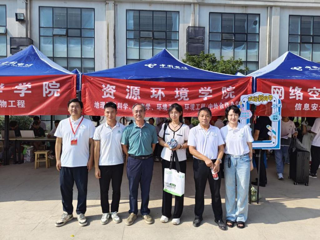 9月7日,资源环境学院党委书记黄月辉、院长彭宇、党委副书记李岚、团委书记赵俊洋、新生辅导员韩鹏振以及学院迎新志愿者来到阳逻校区开展2024级本科生迎新工作。