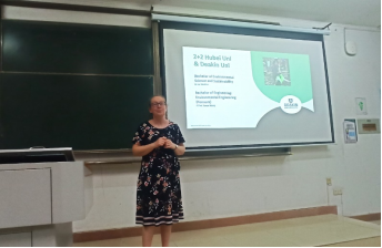 2024年9月25日晚在湖北大学4号教学楼,迪肯大学生命与环境科学学院代理院长Janine Mc Burnie、副院长Liz Weldon,工程学院副院长Yanan Wang,国际项目管理Ivy Wang为2023级环境工程(中外合作办学)专业学生解读我校与迪肯大学合作办学的相关政策。同时也介绍了迪肯大学环境科学、环境工程专业的专业学习内容、未来发展前景、往届校友的现阶段工作情况等。
