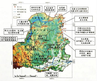 (图为第十六届全国高校地理学联合野外实习路线示意图)