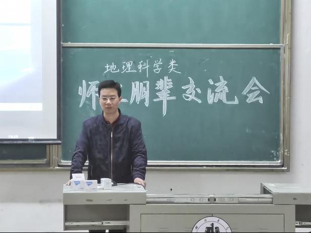 为增进2020级学生对专业的认知,帮助同学们更好制定大学学习规划,4月20日晚,资源环境学院党委副书记李明老师,院团委书记邓琪老师,2017级优秀毕业生代表张鸣钊、马超楠、黄博健、闫华涛等同学赴阳逻校区开展地理科学类师生朋辈交流会;通识教育学院润德苑辅导员段秋炯主持交流会,2020级地理科学类全体学生参加交流会。