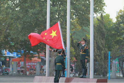 10月1日清晨,资源环境学院、材料科学与工程学院联合组织开展了庆国庆升国旗暨党史学习教育微宣讲活动。校党委副书记侯勇,学校相关单位负责人,两个学院全体领导班子成员、师生代表近1500人参加升旗活动。