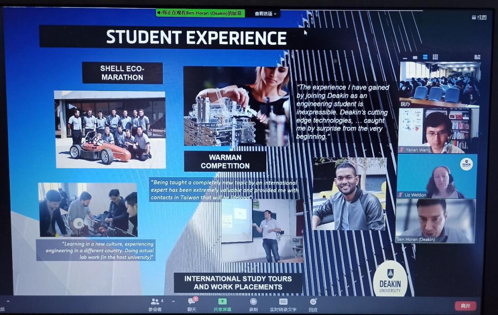 会上Ben介绍了迪肯大学工程学院的专业构成,毕业生的就业方向,学院的特色专业和学科,以及学院教学环境、实验环境等。Bas为同学们展示了迪肯大学的世界排名情况,校园的人文氛围,不同校区的校园环境等。Yanan和Liz向同学们介绍了湖北大学和迪肯大学合作开展的环境工程中外合作办学项目的具体合作方式,课程设置,优秀毕业生案例等。