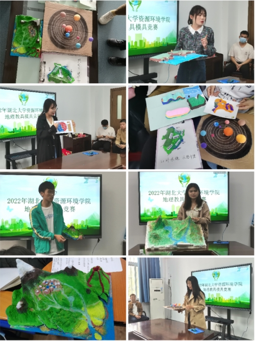 5月14日上午,湖北大学资源环境学院地理教具模具竞赛在院二楼会议室顺利开展。其目的是为落实国家地理课程改革要求,增强学生对地理专业性知识的运用能力,提高学生的创新思维、动手能力和环保意识。本次竞赛由学院党委副书记李岚,副院长梅新,地理科学系赵锦慧教授、刘海教授、庞静副教授等五位老师担任评委。