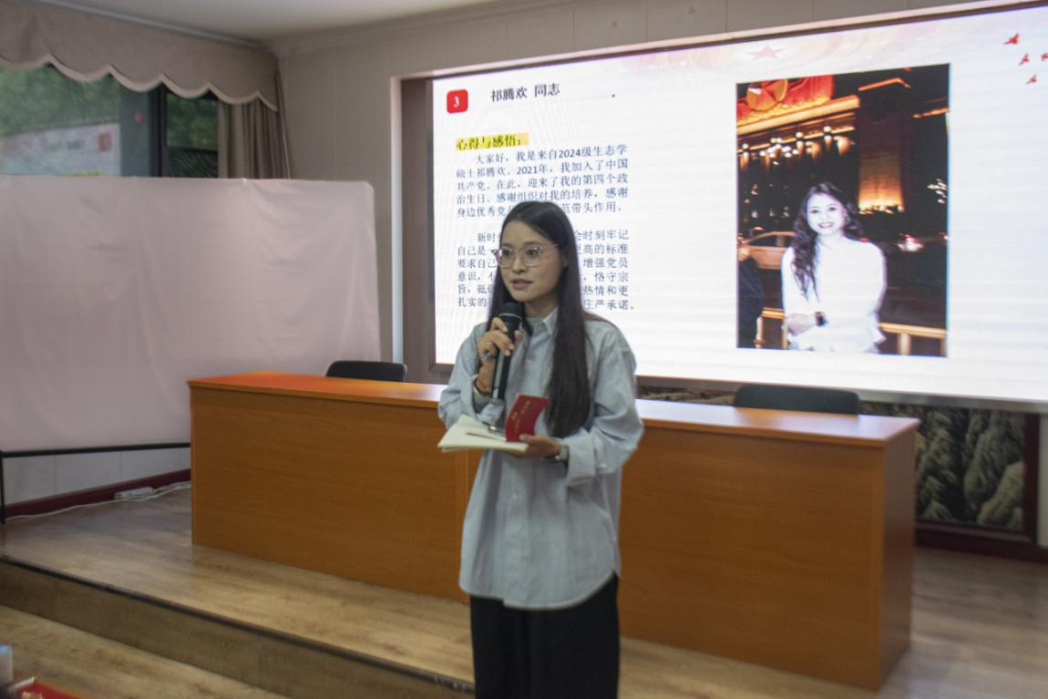 为深入推进学习教育常态化长效化,进一步增强党组织的凝聚力和战斗力,10月15日下午,资源环境学院生态学研究生党支部在学院一楼会议室顺利开展“红歌润心·共庆政治生日·趣学党史”主题党日活动,校组织部何斯婕老师、生态学研究生党支部全体党员,以及计算机学院、文学院、新闻传播学院、材料科学与工程学院、外国语学院等7个学院组织员参加。
