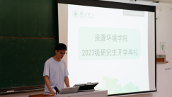 典礼最后,院长彭宇教授致辞,他首先由衷欢迎各位同学加入湖北大学资源环境学院,并向大家详细介绍了学院优良的办学条件、雄厚的师资力量、突出的科研实力、育人成效明显等基本情况。进而给同学们提出了四点建议:一是要树立学习目标,勇于承担责任;二是要树立学术道德观,讲究学术诚信;三是要有团结协助精神;四是要积极参加各种学术交流活动。最后,彭宇院长鼓励同学们在研究生期间应积极参与讨论,发挥自己的主观能动性,营造浓厚的学术氛围!
