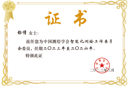 2023年5月6日,中国测绘学会智能化测绘工作委员会成立暨智能化测绘发展研讨会在成都召开,中国测绘学会理事长宋超智,国家自然资源部专家、中国工程院院士陈军,中国测绘学会副秘书长马志勇,国家基础地理信息中心主任冯先光,四川测绘地理信息局局长杨宏山,自然资源部国土测绘司副司长王瑞幺等出席大会。会上,我院彭倩博士被聘为首届委员,任期2023年至2026年。