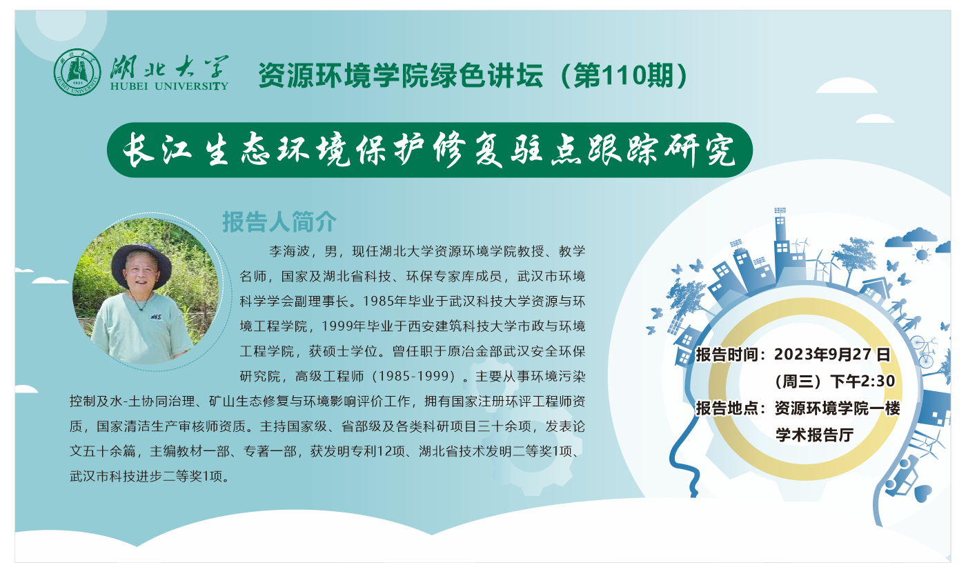 专家简介:李海波,男,现任湖北大学资源环境学院教授、教学名师,国家及湖北省科技、环保专家库成员,武汉市环境科学学会副理事长。1985年毕业于武汉科技大学资源与环境工程学院,1999年毕业于西安建筑科技大学市政与环境工程学院,获硕士学位。曾任职于原冶金部武汉安全环保研究院,高级工程师(1985-1999)。主要从事环境污染控制及水-土协同治理、矿山生态修复与环境影响评价工作,拥有国家注册环评工程师资质,国家清洁生产审核师资质。主持国家级、省部级及各类科研项目三十余项,发表论文五十余篇,主编教材一部、专著一部,获发明专利12项、湖北省技术发明二等奖1项、武汉市科技进步二等奖1项。