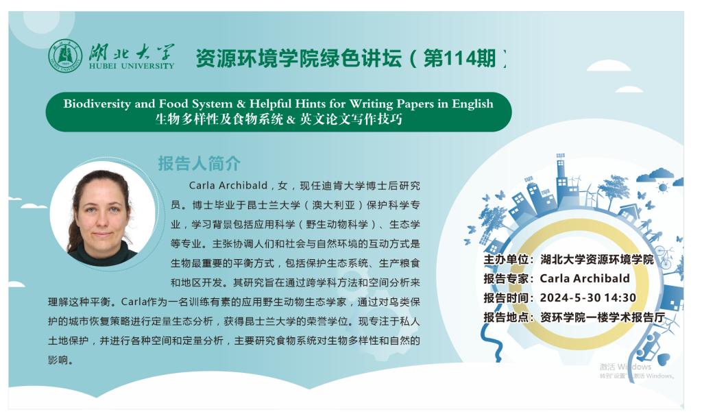 学术报告:Biodiversity and Food System & Helpful Hints for Writing Papers in English生物多样性及食物系统 & 英文论文写作技巧