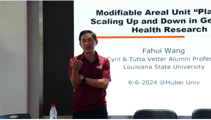 2024年6月6日下午15:15,资源环境学院第115期绿色讲坛如期开展,本期讲座由路易斯安那州立大学研究生院副院长、地理与人类学系教授王法辉教授主讲,主题为“公共卫生研究中地理单元的调整”。梅新副院长主持活动,学院教师、研究生等70余人参加了此次讲座。