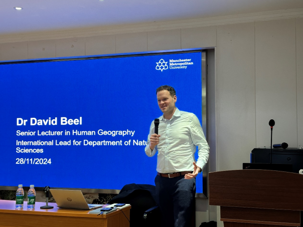 11月27日,一场关于循环经济研究的学术报告会在湖北大学资源环境学院一楼会议室成功举办。主讲人是来自英国曼彻斯特城市大学的David Bee博士,他以阿姆斯特丹的循环经济实践为案例,探讨了这一概念如何以资本主义和地球城市化为中介,并提出了循环经济中的后资本主义替代方案。