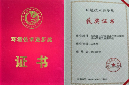 近日,中国环境保护产业协会发布2024年度环境技术进步奖获奖名单。由湖北大学牵头,湖北省水利水电科学研究院、武汉理工大学、安徽工业大学等多家单位完成的《多路径工业固废基生态固碳系统的研制及应用示范》项目,荣获“2024年度环境技术进步奖二等奖”。
