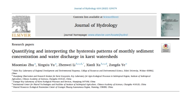 近日,我院于兴修教授团队硕士研究生朱淼淼在国际知名期刊《Journal of Hydrology》(地球科学SCI一区,IF:6.708)发表题为“Quantifying and interpreting the hysteresis patterns of monthly sediment concentration and water discharge in karst watersheds”的科研论文。该论文定量分析了流域水沙滞后关系及气候和植被变化对滞后指数变化的影响。