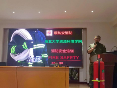 为加强研究生的防火安全意识,提高消防技能,2020年11月14日与17日下午,资源环境学校在院一楼会议室举办了20级研究生消防安全培训,湖北顺防安消防中心高级讲师周翔受邀讲解消防安全相关知识。
