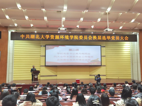 4月7日晚7点,中共湖北大学资源环境学院委员会在学校会议中心思睿厅召开党委换届选举党员大会,学院全体师生党员参会,院党委副书记李明主持会议。