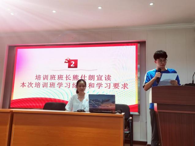 开班典礼在庄严的国歌中拉开序幕,培训班班长熊世朗宣读本次培训班学习纪律和学习要求,并希望大家认真上好每一堂课,深入了解党的光辉历史与先进思想,以合格党员的标准严格要求自己,以最饱满的热忱与最昂扬的姿态完成本次培训活动。