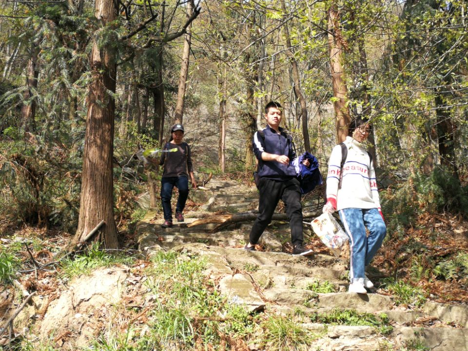 经过2个多小时的车程后,老师与学生们到达了黄陂区的张冲村,映入眼帘的是一派田园景色,附近的房子都已经改造成各种农家乐。首先由张冲村的村民委员会主任给学生讲解了张冲村美丽乡村规划的相关分区以及张冲村与木兰山景区的关系。随后学生们跟随韩忠老师来到朝山古道,这条道路已经改造成了国家级登山健身游步道,学生们一个接一个从这条古道往景区走,期间有些学生虽然体力不支但是依然咬牙坚持到最后,充分显示的地理人的情怀。在中午11点半左右全体学生到达木兰山主景区,在这里学生们感受着地形的变化带来的快感,从山下往上看木兰山美景,并在这里吃自备的午餐。